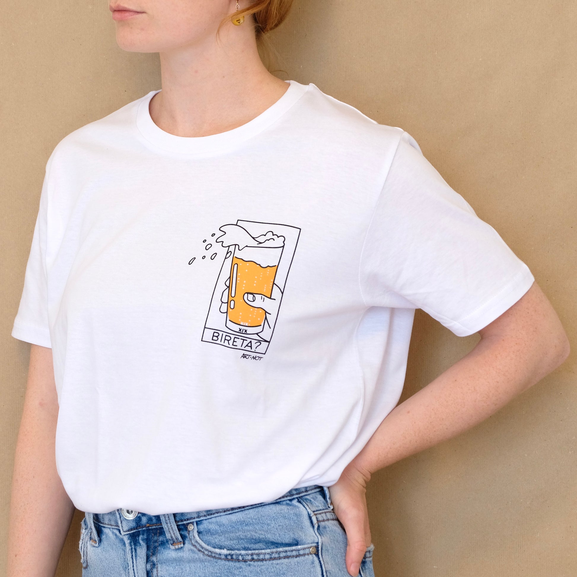 Nella foto la modella è alta 1.60 e indossa una XS. Le maglie sono 100% cotone organico.